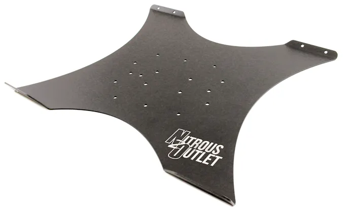 The Nitrous Outlet X-Brace bottle mounting plates are machined from aluminum and powder-coated black for added durability. This bracket mounts in the trunk area of your car and allows for a sturdy mount to bolt your bottle brackets to.