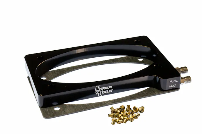 The Whipple Big Bore Elliptical Throttle Body plate conversion kit includes a gasket and jetting to convert a single nozzle wet system to a plate system or to upgrade a current plate system. With additional jetting the Whipple nitrous plate is fully compatible with e85. This conversion is capable of flowing up to 400 horsepower if you feel the need for some serious speed.