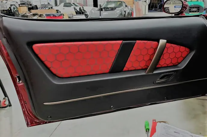 Featuring a honeycomb grille, external accents, and interior upholstery to match, Daniel’s Trans Am looks pretty damn sweet. Clad in custom red paint and loaded with LED lights, Daniel admits that his one-off Trans Am catches attention everywhere it goes. With high-end interior honeycomb mods fabricated by industry magician Jordan Brown, and stealthy touches like hexagonal tow hooks attached, you can see why so many people are drawn to this BadByrd at shows.