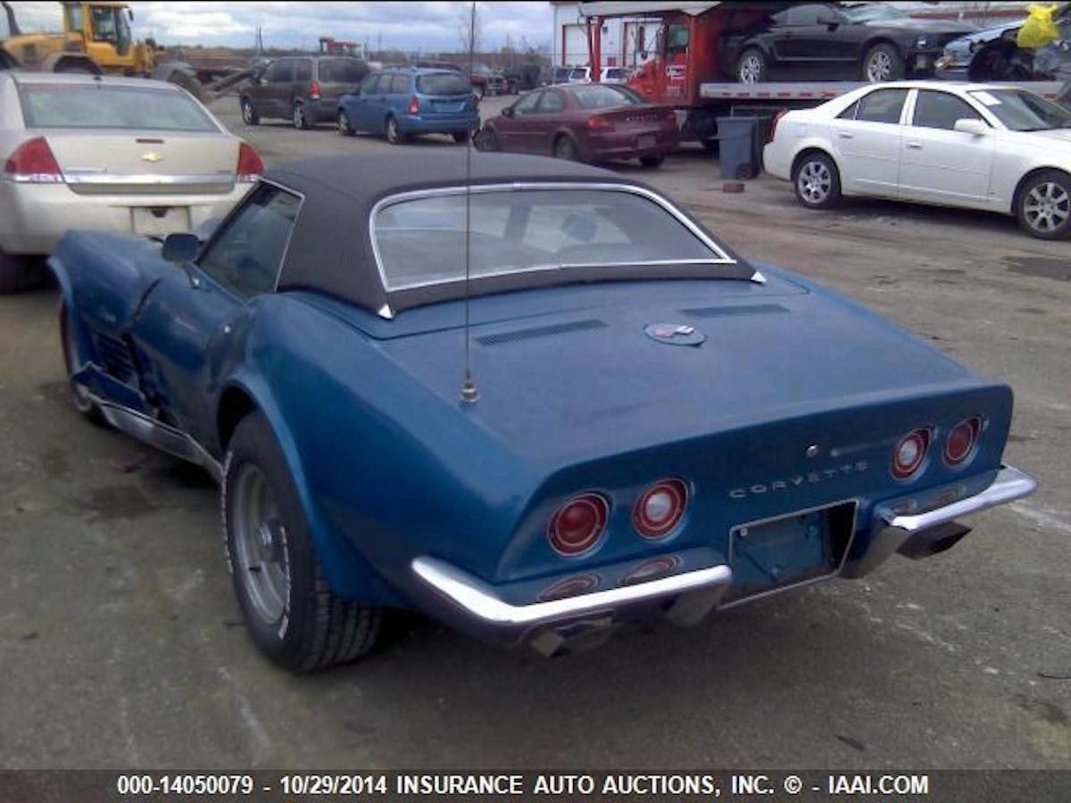 This blue 1972 Corvette now occupies a space on the auction-house website, with high-rolling bidders already in full swing to have the car spared its judgment day. As of this writing, pre-bidding has reached $7,000, which is about a third of its ACV (actual cash value; i.e., what it would be worth in perfect condition) as estimated by the party that sold the vehicle to IAA.