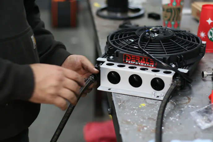 The most challenging part of these builds is ensuring everything connects and fits as required. More often than not, as we saw with our cooler fan, things aren’t usually entirely compatible. Some modifications or fabrication may be necessary for the aftermarket parts to work with the OEM components. Thankfully, this wasn’t the case with the connection of our cooler. An adapter is needed to connect to the factory lines, and the cooler conveniently included an AN to NPT adapter in the box, making our lives just a little bit easier. Another solution could’ve been completely removing the factory lines on our Sierra and replacing them with AN lines from the cooler to the trans. That would not only create more unnecessary work but another adapter would then be needed on the tranny itself. We think we made the right decision using the included adapter, and everything works as expected!