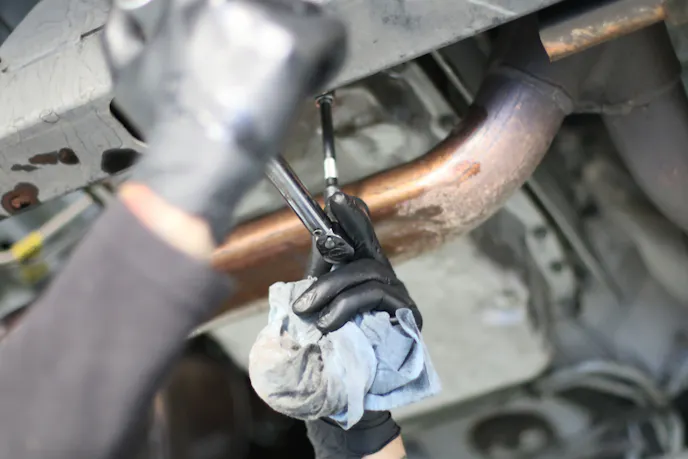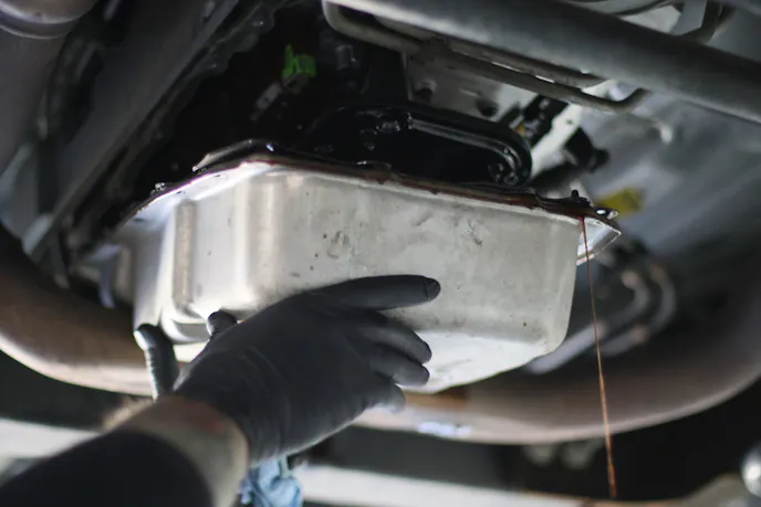 And so we got to work on the build’s final stages, starting with the transmission. After draining the trans and removing the pan, we could replace the stock filter and gasket. From there, we could bolt the transmission pan back on at 80-inch lbs.