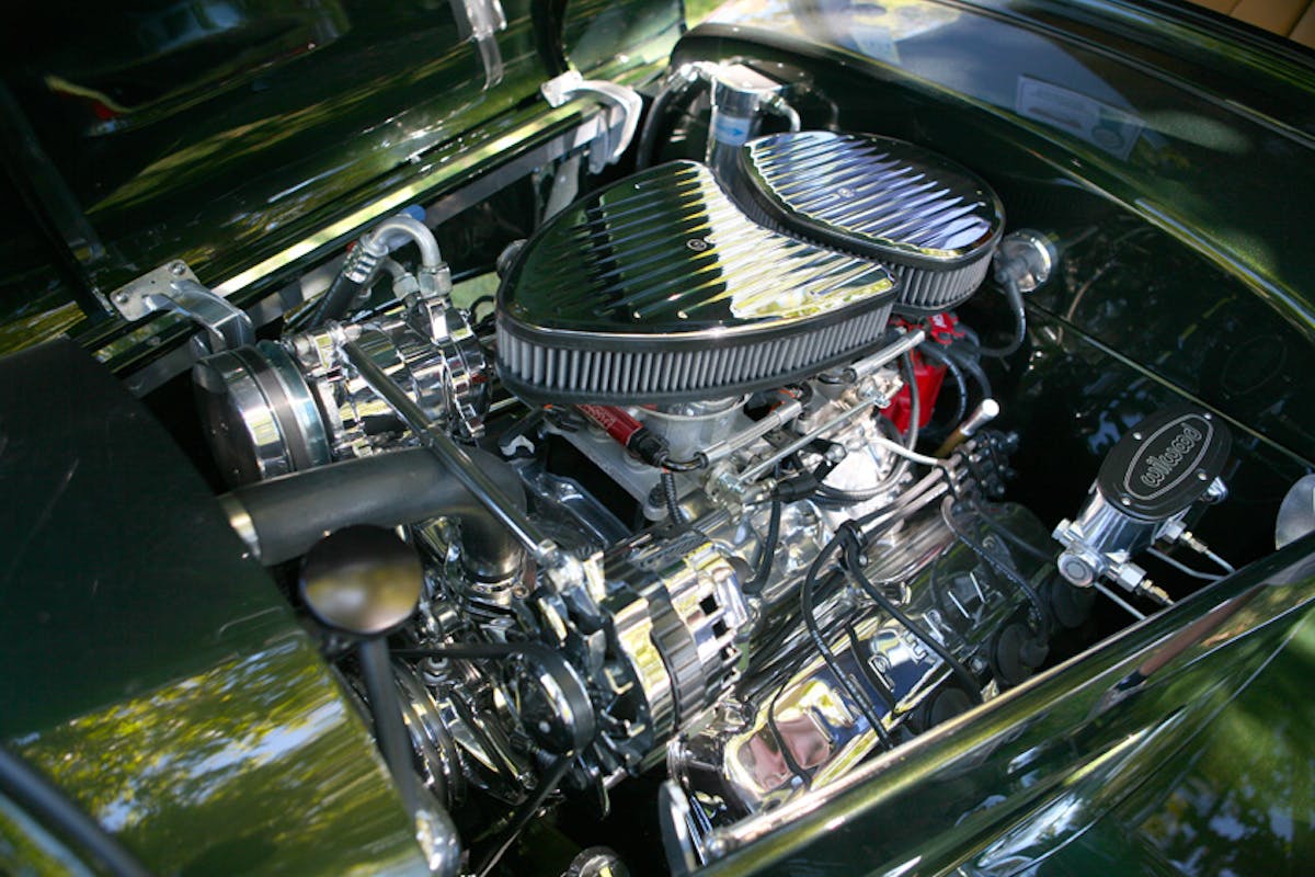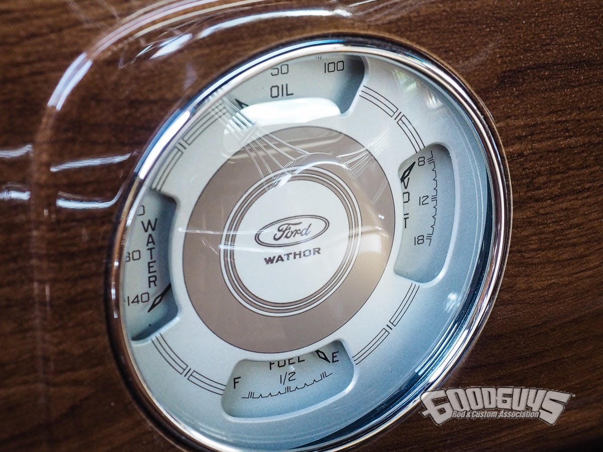 Boise’s Interior Revolutions crafted the dark toffee leather interior and mohair headliner while the instrument panel is fitted with Classic Instruments gauges, Juliano’s ’39 Banjo steering wheel, Flaming River steering column and Lokar shifter.