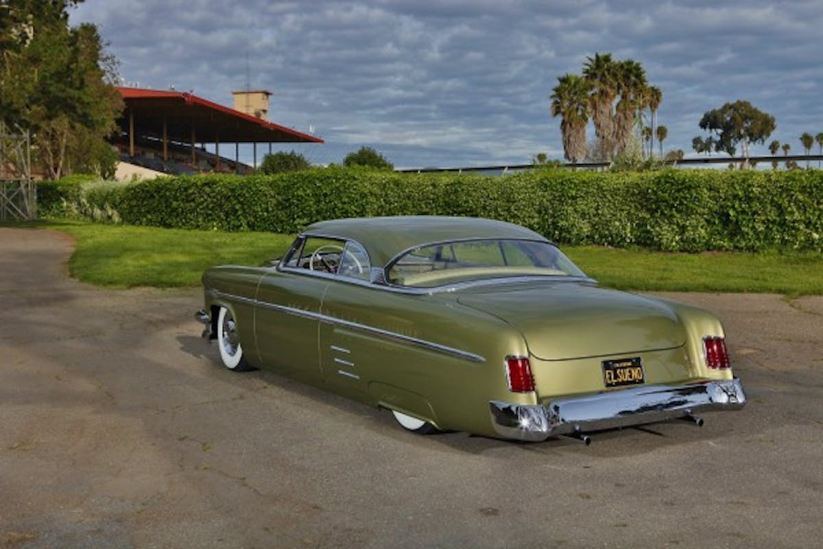 Chopped, nosed, decked and shaved, the Merc absolutely kills in “Chile Verde” green by Penserini. It features a color matched interior by Chris Plante Interiors as well and a color matched 292 Ford Y-block V8 engine.