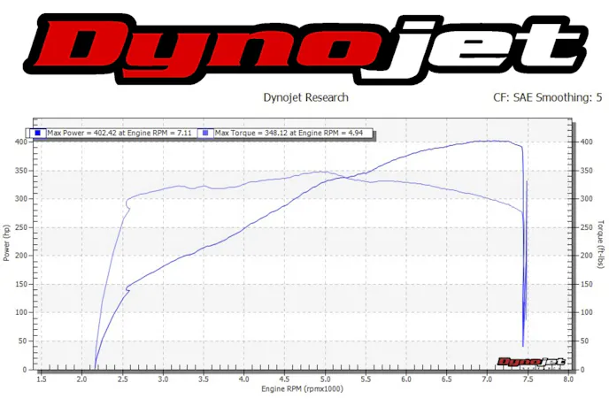 In the end, both cars picked up more power, with the Camaro gaining 10 horsepower and 9.27 lb-ft of torque over its 408 and 425 lb-ft baseline. Meanwhile, the Mustang baselined much lower at 356.27 horsepower and 357.23 lb-ft of torque, but gained 46.15 horsepower but gave up 9.11 lb-ft of torque at the wheels.