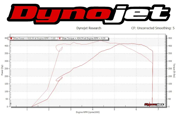 How much the cars gained over their baselines was certainly interesting, but what mattered in this test was the peak power output. Where the rubber met the roller, the Mustang put down 409 rear-wheel horsepower and the Camaro produced 420 rear-wheel horsepower to take the win.