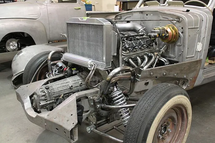 To help accommodate the engine and tranny, a custom independent front suspension was fabricated. Further improving the 37’s handling, Brizio is fabricating an independent rear suspension using parts from a 1993 Cadillac DeVille which should make this rod glide like its on a cloud. The LSX Cord is almost complete and we will keep you folks updated with its progress, but in the meantime, visit Brizio’s project page for a bunch more photos of this fascinating and unique build.