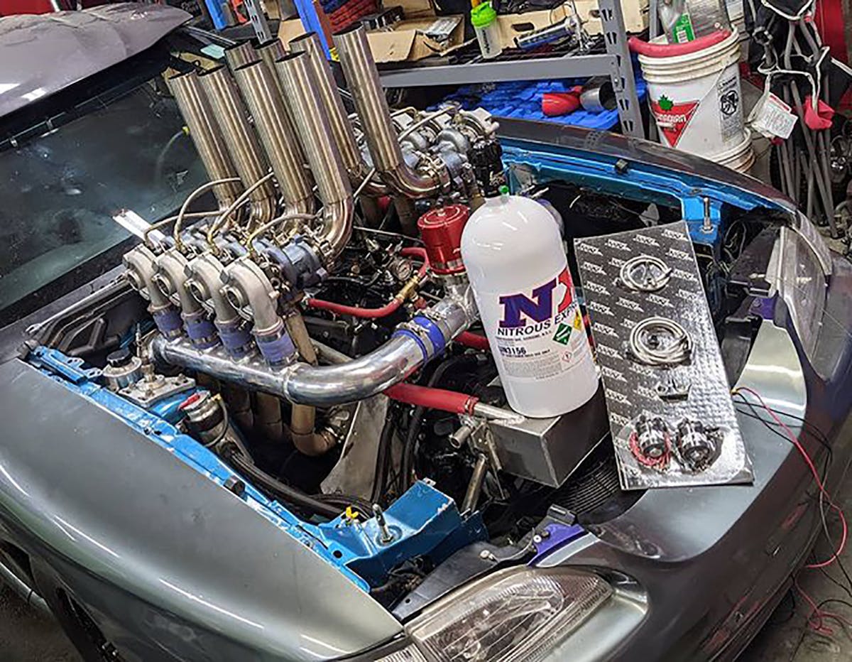 Williams has several videos leading up to the one we have linked at the top of this article, where he shows you the trials and tribulations he overcame to install all of the “turbskis.” His latest video, which features the installation of a Nitrous Express system, gives us a little more insight into his power goals with the octuple turbo system, which is 1,000 horsepower.