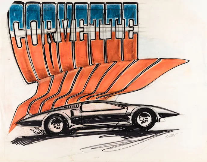The show celebrates the Corvette as the definitive American sports car and will be showing rare designs from the drawing boards of designers, creative directors and students — from the beginning to the present.