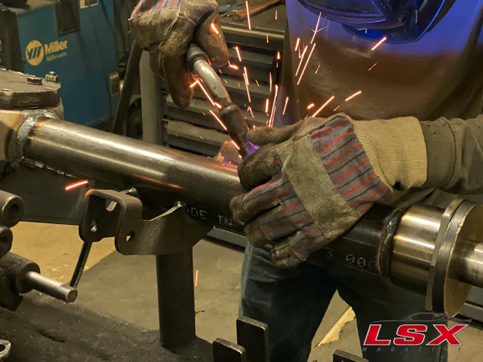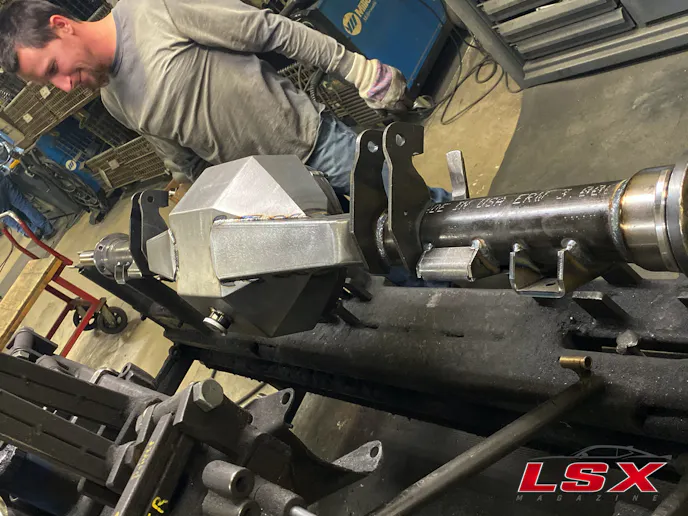 Due to the 4,400-pound weight of the truck and our expected future horsepower levels, it makes more sense to overbuild the rear end and not have to do it again later, saving us time and money in the long run. With these factors in mind, Shane suggested a few upgrades over the standard package. He said, “If your planning on keeping the leaf springs and CalTrack bars, we can actually box the perches in to make them more rigid. I would also recommend running the back brace as well.” Per Shane’s recommendation, we also upgraded to the more robust “1350” u-joint in place of the “1310” unit that comes standard with the Muscle-Pak. These modifications will allow the M9 to hold up to our needs effortlessly even in the heavy truck.