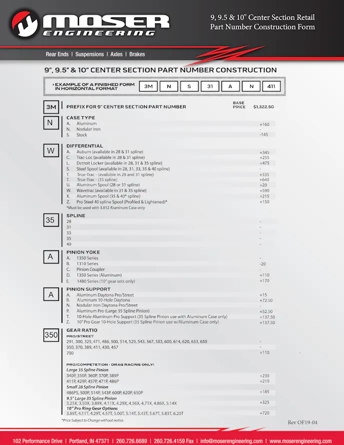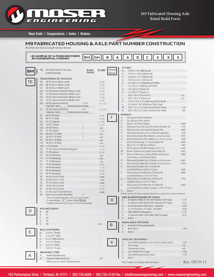 It was now time to fill out the order forms and get the rear axle into production. Shane was kind enough to show us which ones we needed and even helped us complete them while on the phone. For the M9 build, you will need to fill out two forms, one for the housing, and another for the center section. You can see the build sheets that we filled out below, and Moser would prefer that you fill them out over the phone with one of their techs. That way, if any questions come up, a technician can talk to you about the advantages or disadvantages of each option listed. Even though we had talked to Shane extensively about what we needed, we still had a few more questions as we completed the paperwork. When we were done with this process, we submitted them to Moser for review. After Moser receives the order, it only takes a couple of days before they build and ship it to your door.