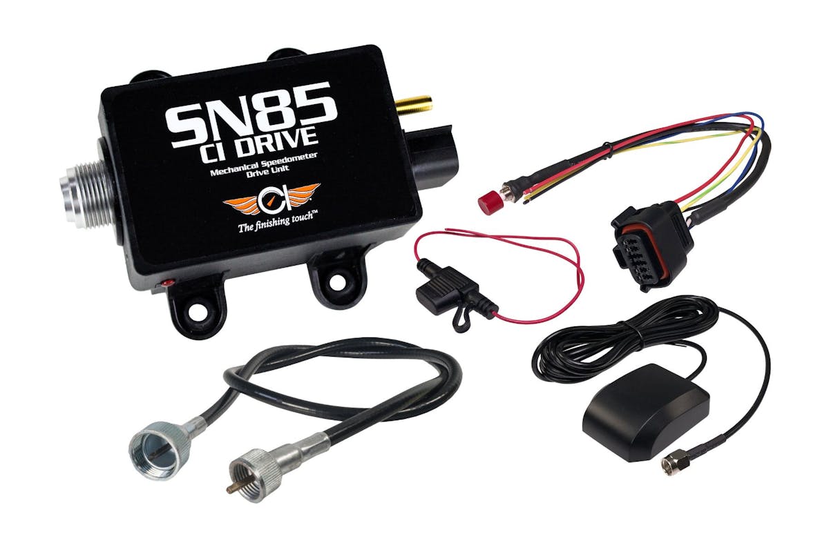 Key features of the CI Drive include compatibility with GM, Ford, and Mopar applications. The standard SN85 kit comes with a common cable that fits most popular vehicle types. For more specialized applications, users can purchase the box and cable separately, ensuring maximum flexibility for different restoration projects.