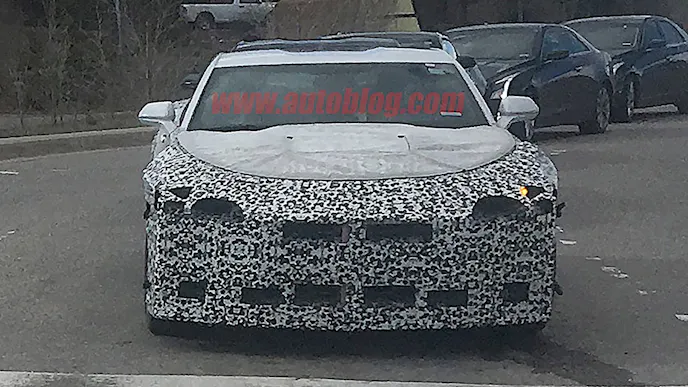 Caught driving around some snowy mountain roads in Colorado, as usual, its disguised in some crazy camouflage, distinguishable only by its roofline and doors. The rear completely covered, and the A-pillar forward hidden under some odd-looking false front-end.