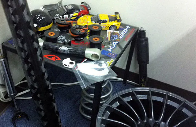 “Oh, that… that’s a carbon fiber fuel door interlock from Johnny O’Connell’s 2001 LeMans-winning Corvettte,” or, “This was a prototype ‘chute release bracket for Tony Pedregon’s funny car,” are the kinds of conversation openers you don’t soon forget. OK, so how do these people get a hold of this stuff? Well, there’s a great chance right now for you to score some desk dress-up pieces just like that.