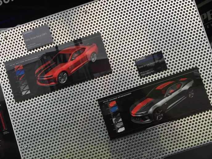 Also available is an engine cover in the shape of the Camaro logo with the Camaro emblem on it. Judging by the shape of it, it’s designed to fit the 3.6L V-6 engine.Other miscellaneous options are darkened tail lamps, floor mats and a car cover.