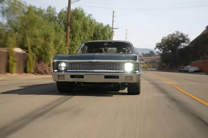 Once Davis got behind the wheel, the supercharged Nova showed its true nature, springing to life. After doing an aggressive pull, Davis exclaimed, “There’s so much torque available, dude … this car just makes you want to drive!”
