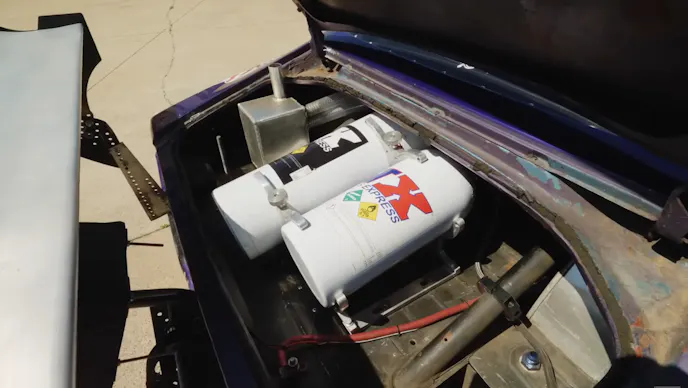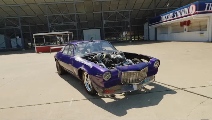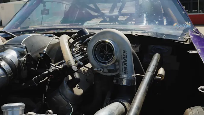 If you follow small-tire no-prep racing at all then you will have most likely heard of, or seen, the purple 1971 Chevy Camaro known as the Kraken. Steve Little has made a name for himself and Kraken by winning many of the country’s biggest no-prep races as well as many races in “Mexico”, or as Little puts it, “It has a pretty good success rate.” The ’71 Camaro was a bracket car in a previous life before Little put it to work in the no-prep scene. Powering Kraken is a stock-bore diameter 5.3-liter LS. The stock block is filled with a forged rotating assembly that is force fed air from twin 72mm turbochargers from Forced Induction Solutions. According to Little, the engine uses a pair of Kraken cylinder heads that are an exclusive part he sells through Kraken Race Supply. The car was recently converted to run on alcohol and still has an intercooler so keeping intake air temps down is no problem. Little says the car makes approximately 1,500 to 1,800 horsepower depending on whether or not he’s spraying the Nitrous Express nitrous system.