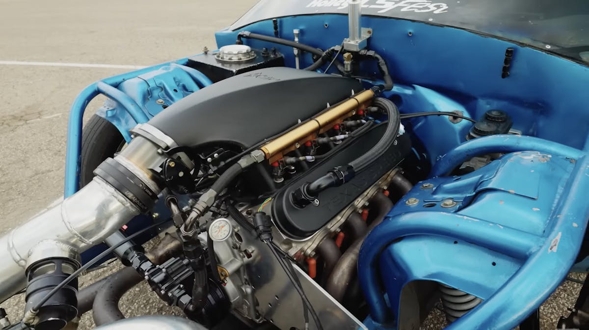 In THAT lane we have Justin Cavazos and his blue 2000 Pontiac Trans Am known as Scrappy. Cavazos works for Texas Speed and Performance and does a great job of showcasing what the company’s engines and other components are capable of. Justin and his Trans Am are commonly found most weekends at drag race events. Powering Scrappy is a 427 cubic-inch LS engine built by Texas Speed. It utilizes an LSX block for its ability to easily handle the 40-plus pounds of boost. Justin feeds it from a VS Racing billet 102/118 turbocharger. Texas Speed topped the short block off with a pair of its PRC 260cc cylinder heads and its Titan intake manifold to feed the cylinders large quantities of air and VP Fuels M1 methanol. A Texas Speed “Scrappy” camshaft controls the valvetrain, and is available for purchase for your own turbo LS engine build. A FuelTech FT600 ECU controls all the electronics and gives Justin a view of the car’s vitals.