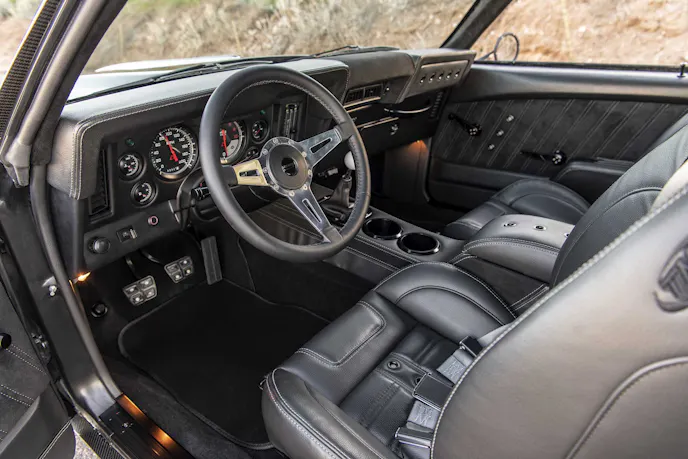 Many auxiliary systems come together to make everything work as it should. A VaporWorx fuel pump moves the fuel from the 18-gallon Rick’s Tanks repository, and GM’s electronics make the magic happen when the key is twisted. An American Autowire harness filters power throughout the rest of the vehicle. The Wegner Automotive front accessory drive and Wizard Cooling system featuring dual 13-inch fans ensure the LT4 engine keeps cool. Finally, a set of Ultimate Headers and custom Magnaflow exhaust lets it breathe as much as it needs when the going gets tough.