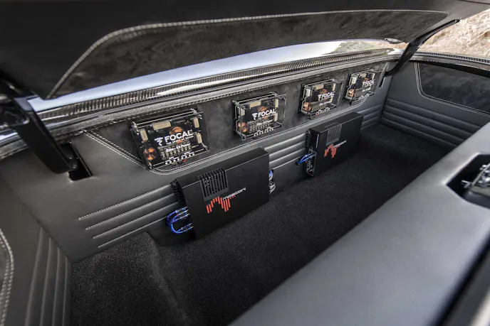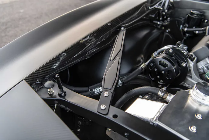 That same craftsmanship carries over to the interior, which is trimmed with TMI Products’ VXR Pro seating up front. A carbon-based rear seat-delete fills in the second-row seating, while custom Alcantara-wrapped panels from TMI fill in the rest of the interior. A Flaming River tilt column gives the driver yaw control, while an Old Air Products A/C system controls the climate within. Classic Instruments give the dash cluster added appeal, and a custom four-point roll bar increases the safety of all involved. As if aligning weave patterns wasn’t enough, the level of detail exerted in creating Viral’s interior is a tribute to the talents of Finale Speed’s team.