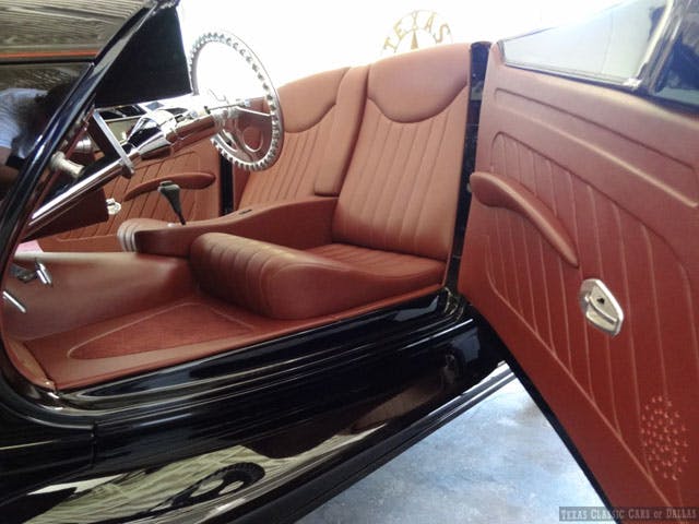 Coast’s own chassis for the car is enhanced with a Kugel Komponents’s front suspension and a four-link rear suspension supporting a Ford 9-inch rear axle. Under the side-opening hood, you’ll find an an all-aluminum 345HP Chevrolet LS-1 V8 engine mated to the 4L60E 4-speed automatic transmission. This modern combination is ideal for total reliability and all the power this ride will ever want for.