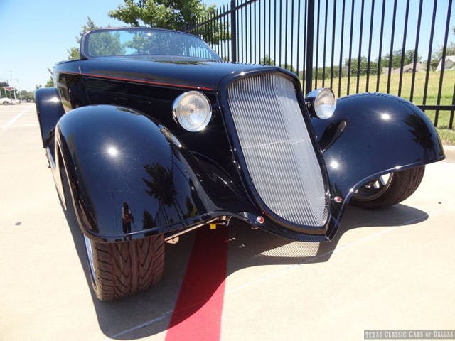 The classic lines that defined the 1933 Ford Roadster are dramatically enhanced in the Coast to Coast fiberglass body used in this car. The show quality paint job and custom billet grille serves as reminders that little or no expenses was avoided in putting this roadster together.