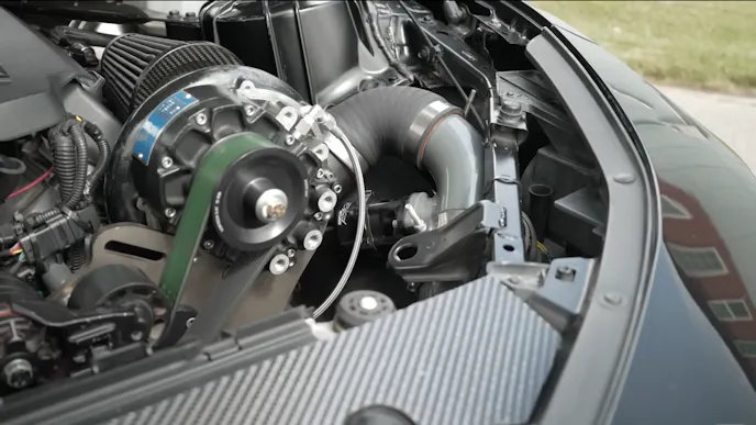 In THAT corner is something most of us are probably more familiar with. It’s a 2016 Chevy Camaro SS that is modified from front to rear. Starting in our favorite place, under the hood resides a Gen V 6.2L LT engine that, according to the car’s owner Kyle, is slightly bigger than stock. He doesn’t share many details on the engine combination, however, it’s not hard to see the Vortech YSi-Trim centrifugal supercharger sitting next to the engine. According to Kyle, the combination is good for 1,040-wheel horsepower. Getting all that power to the ground is a set of 15×10-inch Bogart single beadlock rear wheels with Mickey Thompson 325/50R15 ET Street R drag radials. The Camaro is still running the stock rear differential and six-speed manual transmission. According to Kyle, his Camaro weighs approximately 3,840 pounds.