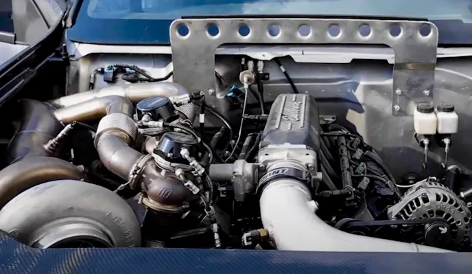 The engine bay in the TBSS houses a Mike Lough Racing built 388 cubic-inch LS engine backed by a Rossler TH400 transmission. A massive GT55 88mm turbo pushes 30-pounds of boost through the powerplant as exhaust vents out the passenger side fender. The rear suspension is still a stock-style 4-link with a 28-inch tall tire out back, which has been good enough for 1.3-second 60ft times. However, Cole is unsatisfied with these times and knows the truck can go quicker. According to Cole, the engine is making about 1,500 horsepower at the moment, which was enough to propel the TBSS to a new record of 8.200 et at 171.49 mph. And there’s more left in it. Cole said, “Future plans are to keep figuring the chassis out so that I can turn it up. That pass was really soft until about two seconds out.”