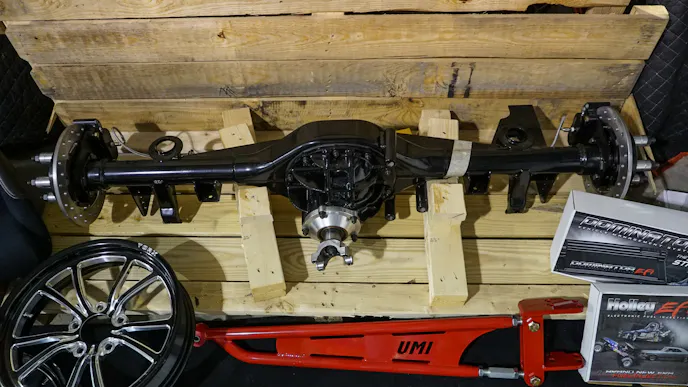 Did we mention the 1.5-inch per side narrower rear end? Man, we’re killing it on these segues today. Let’s just keep it rolling… See what we did there? Man, we’re killing it on these puns today. Okay, sorry, back to the tech. Vengeance spec’d a brute of a 9-inch build from Moser, which features, like, everything you’d ever want, including 35-spline axles, a spool, 5/8-inch wheel studs, and matching Moser drag brakes. We went with the lowest (numerical) gearing we could fit at 3.25 because math. More math in a later article…