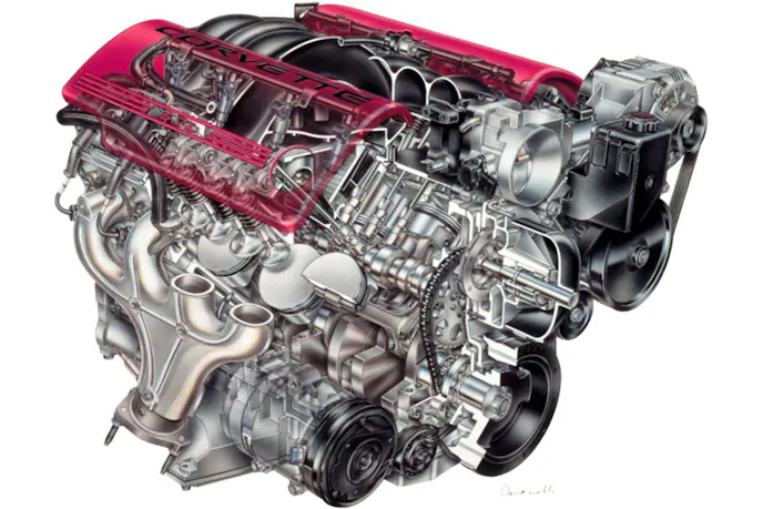 This new block was paired with high-flowing cylinder heads that featured a 15-degree valve angle rather than the 23-degree angle utilized with the Gen II engines, which in turn offered a more direct path to the combustion chambers. In its debut configuration the LS1 offered 345 horsepower and 350 pound-feet of torque, up 15hp and 10lb-ft from the LT4, while also weighing 44 pounds less than the Gen II motor and delivering better fuel economy.