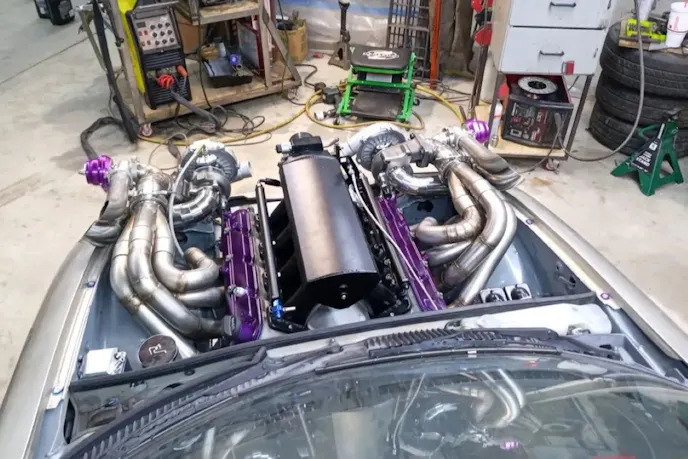 Cappy was vinyl wrapped with 3M gloss blue metallic by the time they got it fired up to cover the original silver paintwork. How much power does Cappy make? Those numbers have yet to be made public, and the owner has kept that to themselves, for now. But with two turbos on a 4.8-liter LS, we know it will be a handful in this tiny car. Is there such a thing as too dangerous? Yes, in the best way possible.