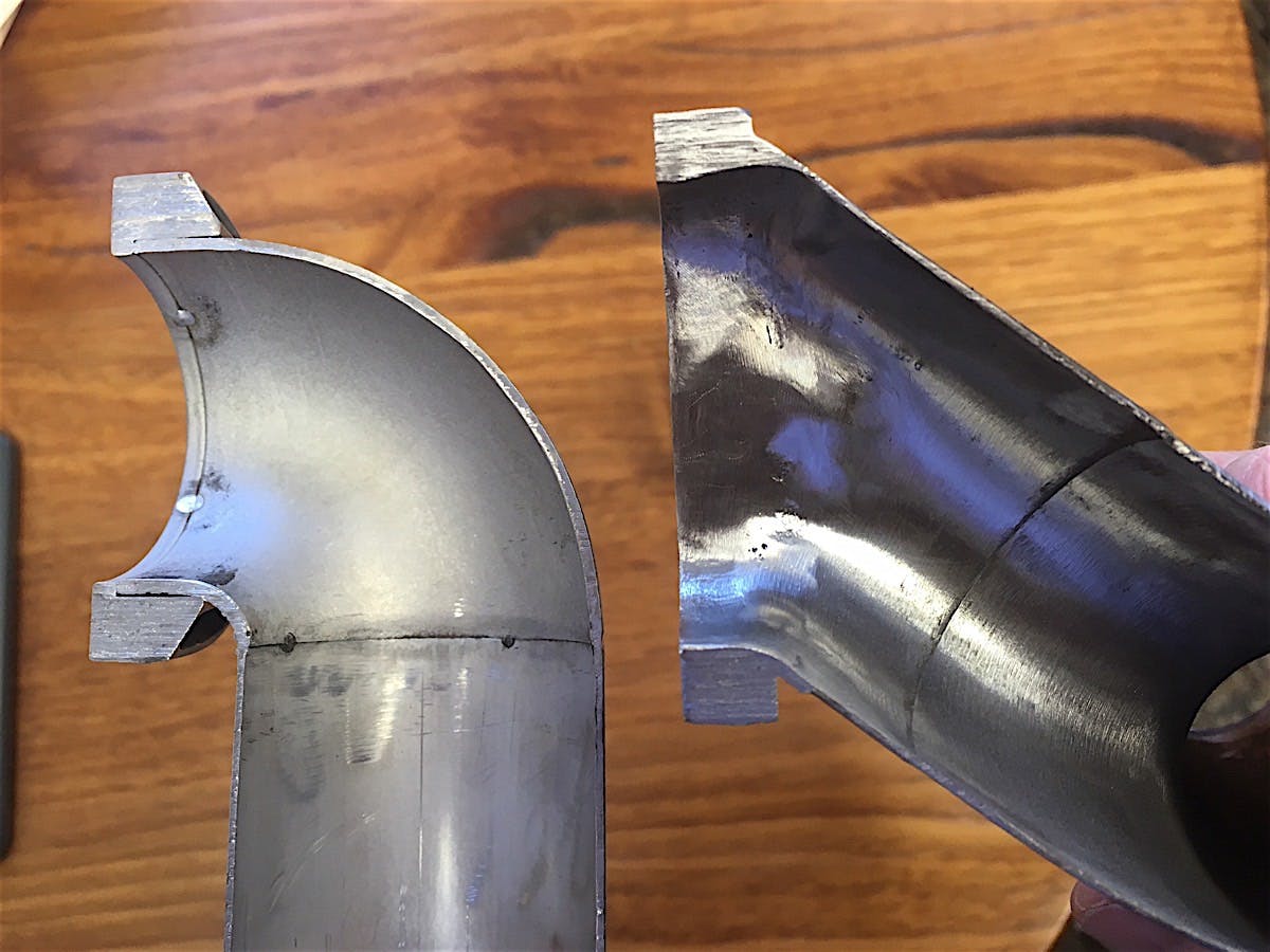 “We use the cast elbows for bends that are too extreme for tubes to be bent without fracturing,” Browning said. “The wall thickness is very uniform, there is no thinning at all like what you would see with a bent tube.”
