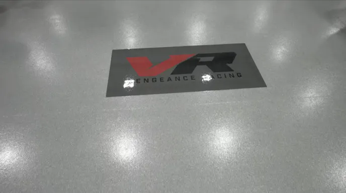 In just four days Distinctive Concrete Concepts sanded the floors, addressed and filled cracks and seams, applied a base coat and clear coat along with sprinkling in anti-slip material. The cherry on top for Mowen is the Vengeance Racing logo that was embedded under the floor’s clear coat. Looking at the finished product it’s easy to see some of the benefits of a quality floor coating applied by professionals. Having your floors coated can be a significant upgrade to improving productivity whether it’s in a commercial shop or a personal garage.