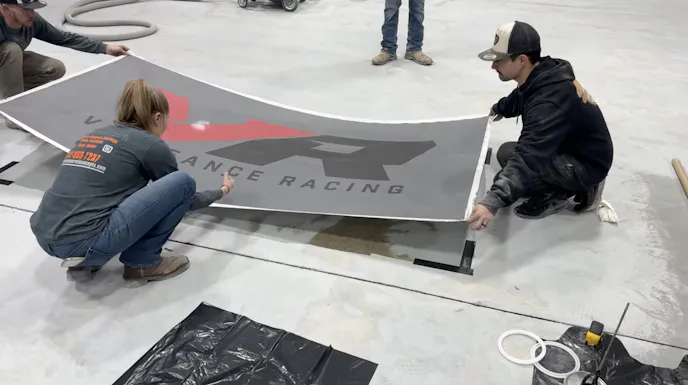 It turns out that’s exactly what the team at Distinctive Concrete Concepts wanted to do. With a plan in place, the crew made the trek from Texas to Vengeance Racing and transformed the entire shop floor. Not only did they make the long haul to Georgia, but the Distinctive Concrete Concepts team got straight to work immediately upon their arrival. “These guys are hard chargers and go-getters,” Mowen said. He was most impressed by the pride the crew took in their work and the attention to detail.