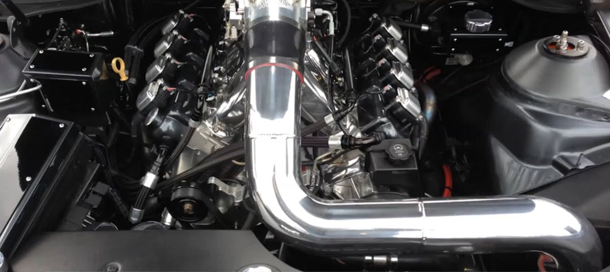 The motivation for those stellar time slips comes from an IPS built twin-turbo 427ci LSX with cylinder heads and the intake manifold from All Pro. An Aeromotive Pro Series fuel system keeps the boosted LSX happy, and the power gets transferred through a Turbo 400 transmission built by RPM on its way to a DSS Ford 9-inch center section that still uses the stock IRS configuration. Traction is provided by a set of 15-inch Weld wheels wrapped in Mickey Thompson Drag Radials.