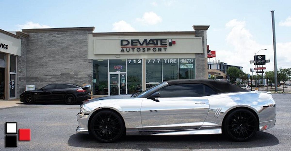 The fifth-gen Camaro SS convertible is apparently owned by rap artist “Slim Thug.” In true swag fashion, the car has been treated to not only a custom chrome wrap with chrome Chevy emblems, but also a matte black hood and tail stripes by Houston-based Deviate Autosport. Obviously someone wants some attention and that’s exactly what this combination will get.