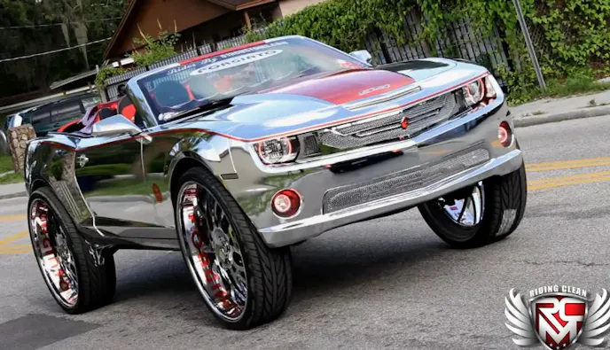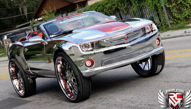 We think this next Camaro will be remembered as a watershed moment in automotive excess. This completely-chromed out muscle car is not only unbearably shiny, but rides on 32-inch Fogiato wheels that give it more ground clearance than a Jeep Wrangler.