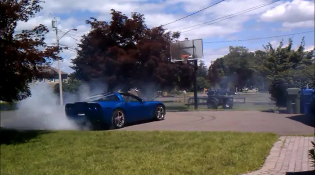 What happens when you leave the keys to a ’08 C6 Corvette and someone with a passion for tire destruction home alone? The answer – DRIVEWAY DONUTS! Whether or not the gentleman behind the wheel is just a kid or an enthusiastic young Corvette owner, one does have to admire his driving skill. Despite the spinning effect at the beginning of the video, the overall quality is decent and the tire destruction is pure entertainment. Starting off innocently enough, the driver starts the car and exits the three-car wide driveway. As he returns to the house, he pulls into the driveway while using a turn signal; this fellow seems to have a healthy respect for traffic laws, but who knows what his neighbors have to say.