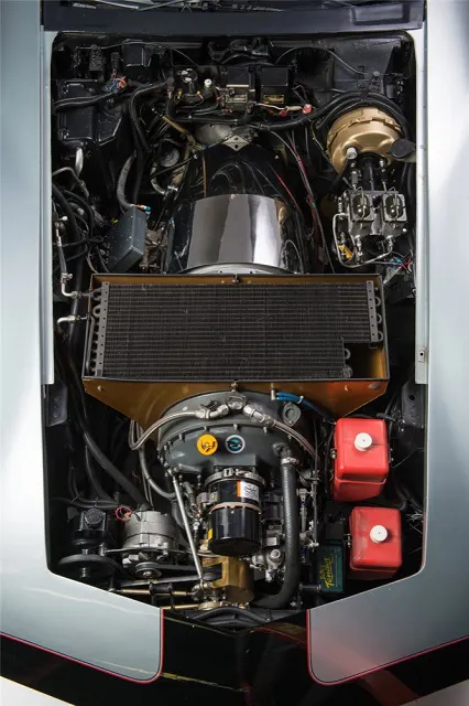 The C3 Vette was chosen because it’s long curvy hood could accommodate the length of the Turbine engine. Look closely and you’ll see the flip up headlights are gone and the leading edge of the hood almost meets the front bumper.