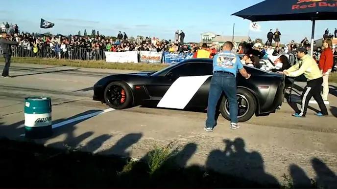 Eastern Europe isn’t exactly known for putting safety in the forefront of anything, but it seems they are at least starting to make a few misguided efforts during motorsports events. This YouTube video features a C6 Z06 facing off against a Zaz GTR, at an event somewhere in Eastern Europe called “Adrenalin Fest drag-racing” The driver seems to be having a bit of trouble getting a decent burnout going, and the officials are looking to do everything they can to protect the crowd should one of the cars lose control.