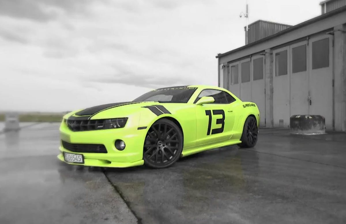 With access to plenty of Porsches and BMW’s its pretty interesting that so many German tuners are taking quite a shine to the 5th Gen Camaro. The retina scorching lime green Camaro featured in this video from YouTube is a full on, left hand drive US-spec “SS” that has been tuned by Germany’s Geiger Cars. (One of the first things we noticed, other than the blinding color of the car, is that they left all the SS emblems on the car. Interesting…)