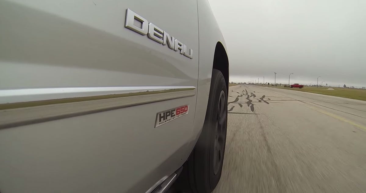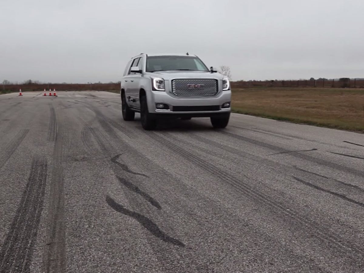 Hennessey Performance recently tested their HPE650 package on the new Yukon and yielded some awesome results. The SUV gets up to 60 mph in 4.5 seconds and the quarter mile is achieved in 13.1 seconds at 110 MPH – not bad at all for a heavy SUV!