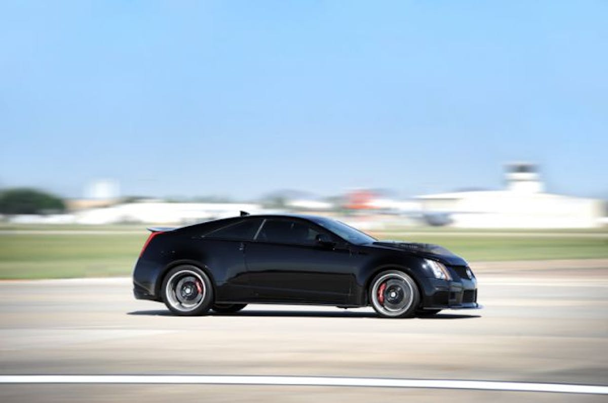 Keep in mind, this is at the lowest possible power setting of ONLY 800 horsepower. See, what Hennessey has done is taken Cadillac’s already-excellent CTS-V Coupe, with its 556 horsepower LSA engine, and they’ve turned it into a monster. Twin turbos replace the supercharger, and the whole engine and suspension undergo an incredible transformation that turns this street bruiser into one of the fastest cars in the world.