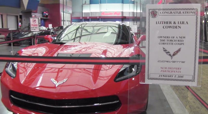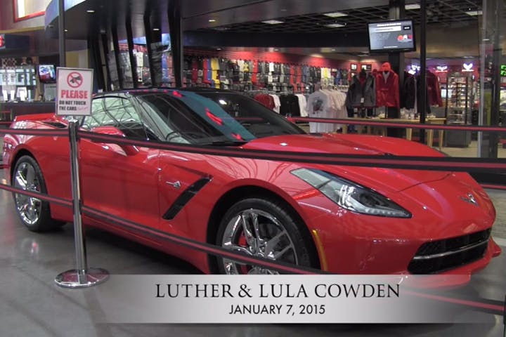 As Lula walked on down the main corridor, Luther stopped to read a sign placed in front of a red C7 on display. Luther’s long-awaited surprise paid off when Lula leaned in close and read the words: “Congratulations Luther and Lula Cowden, owners of a new 2015 Torch Red Corvette Coupe.”
