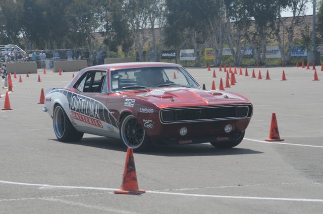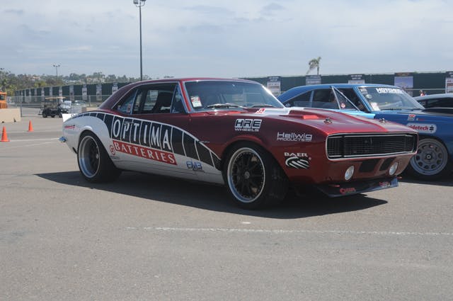 During the Spring installment of the Goodguys Del Mar event, Chad Reynolds took time to interview James Shipka and Mary Pozzi about the Optima Batteries One Lap Camaro for showthedrive on YouTube. It is hard to believe that this magnificent machine started off as $2,500 6-cylinder car purchased on eBay. Shipka told Reynolds that you get what you pay for on eBay; every panel aside from the roof and rocker panels have been replaced on the car. This car was destined to compete in the grueling One Lap of America competition four weeks from the Goodguys event. One Lap is loosely based on the Cannonball Run, which involves a 3500-4500 mile drive with subsequent stops at various autocross courses, road courses or drag strips that are guaranteed to test the durability of any vehicle.