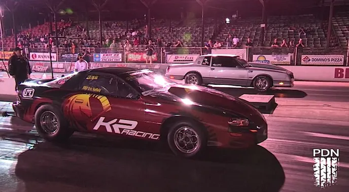 That’s just what happened at LS Fest last Saturday night in Bowling Green, Kentucky when Joe Huneycutt not only almost slammed his 4th generation Camaro into he wall, but came pretty darn close in taking out Robert Strong and his Monte Carlo SS in the process.