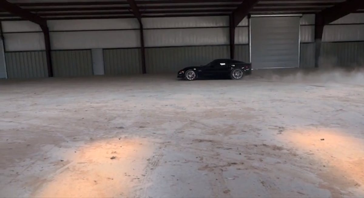 We’ll leave that up to you, but as we watch the black Vette kick up clouds of smoke and dust inside the Emory warehouse we can’t help but fear that this may be putting at risk both the driveline and the bodywork.
