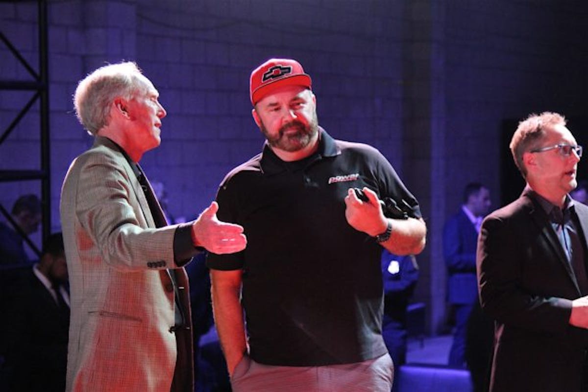 A female duo took the tiered stage to warm the up the crowd and played a funky set of music with an electric violin and two turntables. As we looked into the audience most Corvette dignitary were present and accounted for. Styling honchos Kirk Bennion, Tom Peters, Corvette Chief Engineer Tadge Juechter, and aforementioned Harlan Charles, and Mark Ruess.