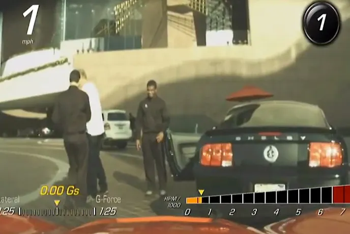 After coming to a stop, and seemingly trying to launch the car, he ultimately hits 50 mph, not exactly a safe speed for a parking garage and certainly not what you need to be doing with another person’s vehicle.