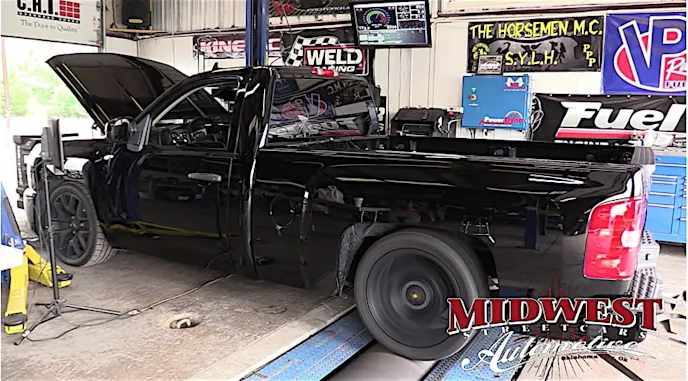 Regardless, the build moves on and sees the addition of Stainless Works headers— for which they suspiciously also have a banner for. Next comes some aggressive hole-sawing of the factory bed to make way for a side-exit exhaust. The exhaust actually turns out pretty cool and gives the truck a pretty mean snarl. The truck is eventually placed on the dyno where it makes 558 horsepower at the rear wheels all while supposedly running out of fuel. All said and done, a little 5.3 that makes as much horsepower at the tires as a fifth-gen ZL1 Camaro does at the crank is nothing to sneeze at. While Shearer might not be a fan of “belt-drive horsepower,” it’s hard to argue with results like that. And, if you ask us, we’ll take gobs of horsepower anyway we can get them. But that might just be us.